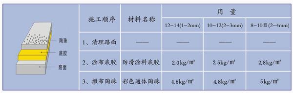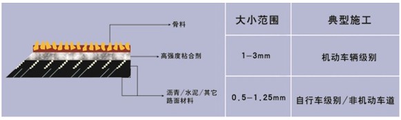 我公司采用陶瓷颗粒耐磨骨料。色彩丰富,通体一色,硬度高,耐磨,集高科技、耐用于一身。同时,色彩多样的骨料,改变了传统单调的道路状况,为道路安全添加了色彩。